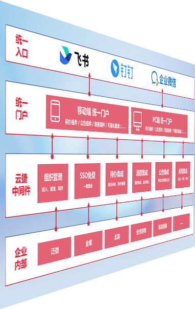 对协作平台提供支持服务,,,支持企业应用与协作平台对接,,,包含组织同步、、、消息集成、、、待办集成等。。。。支持目前主流的协作平台:钉钉、、、、企微和飞书。。。。