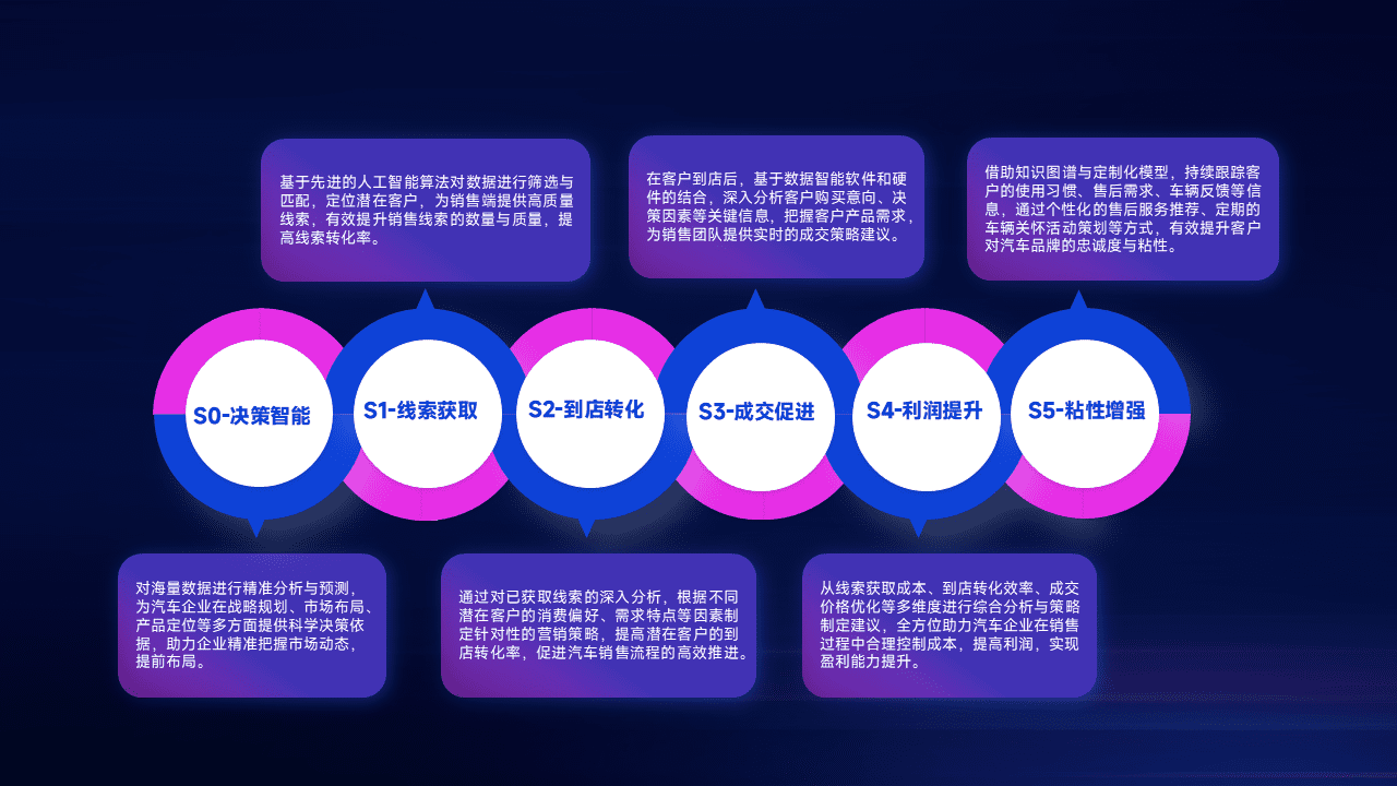 通过拓宽潜在客户来源、、、优化线索分配并提高到店转化率,,,以增强销售效率。。。同时,,,,利用线索数据不断优化分析模型,,,,有效提升转化率,,,扩大营销影响力。。